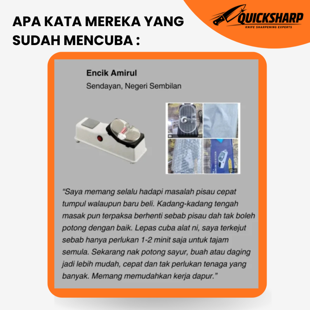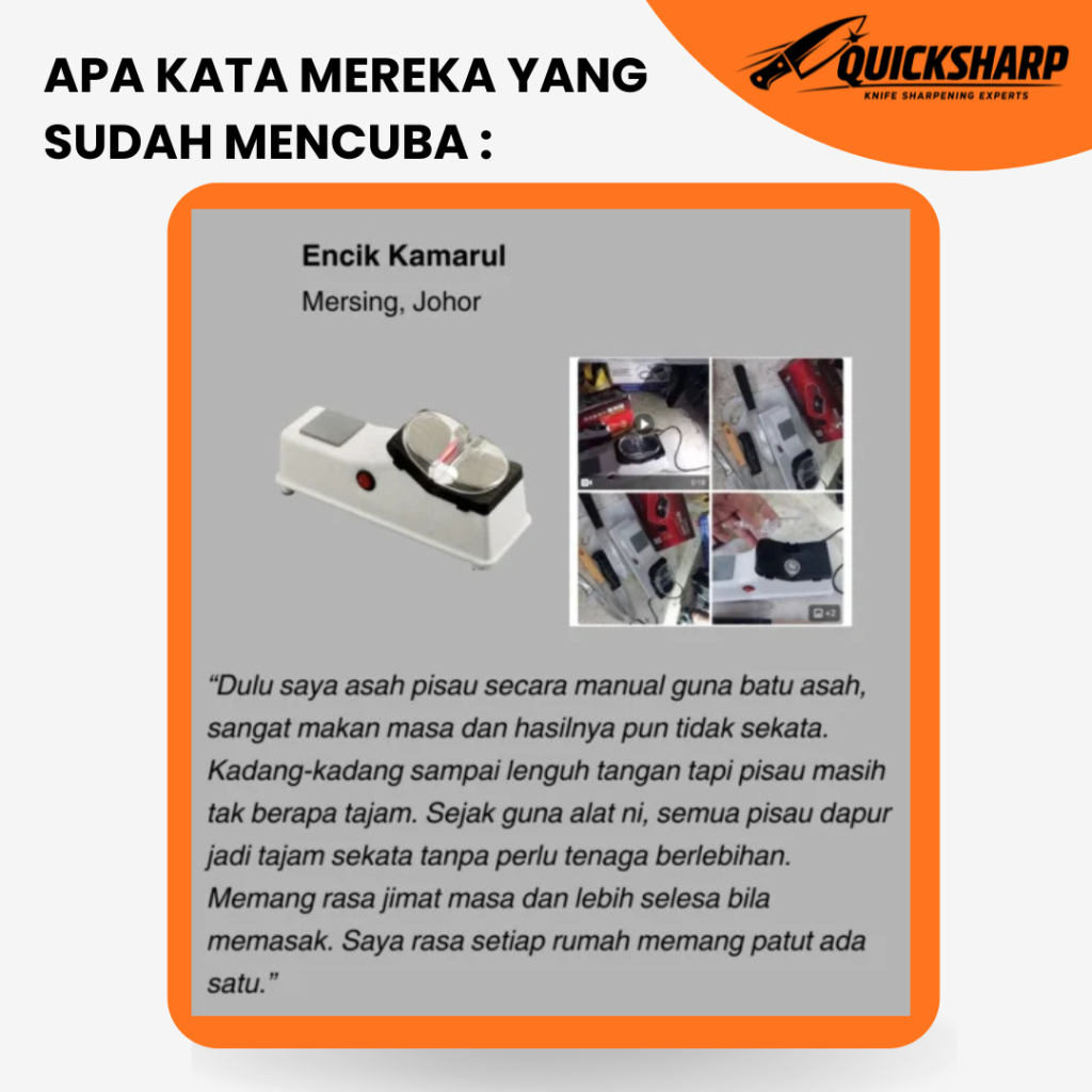 “Selamat, Jimat masa dan tenaga anda, hanya 1 ke 2 minit sahaja dah tajam “
