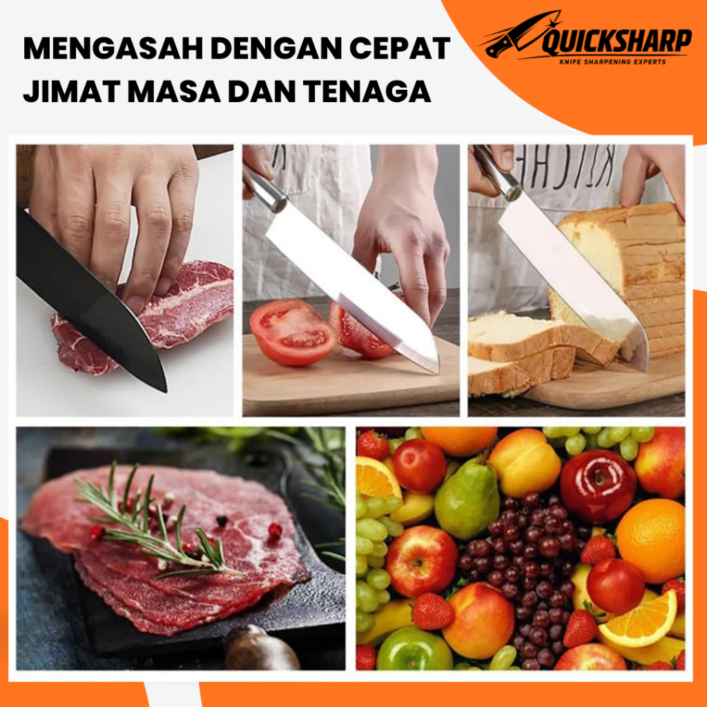 Dengan teknologi batu asah berlian & reka bentuk pelindung, QuickSharp bukan sekadar pengasah biasa – tetapi penjaga pisau agar kekal tajam, tahan lama & selamat digunakan.