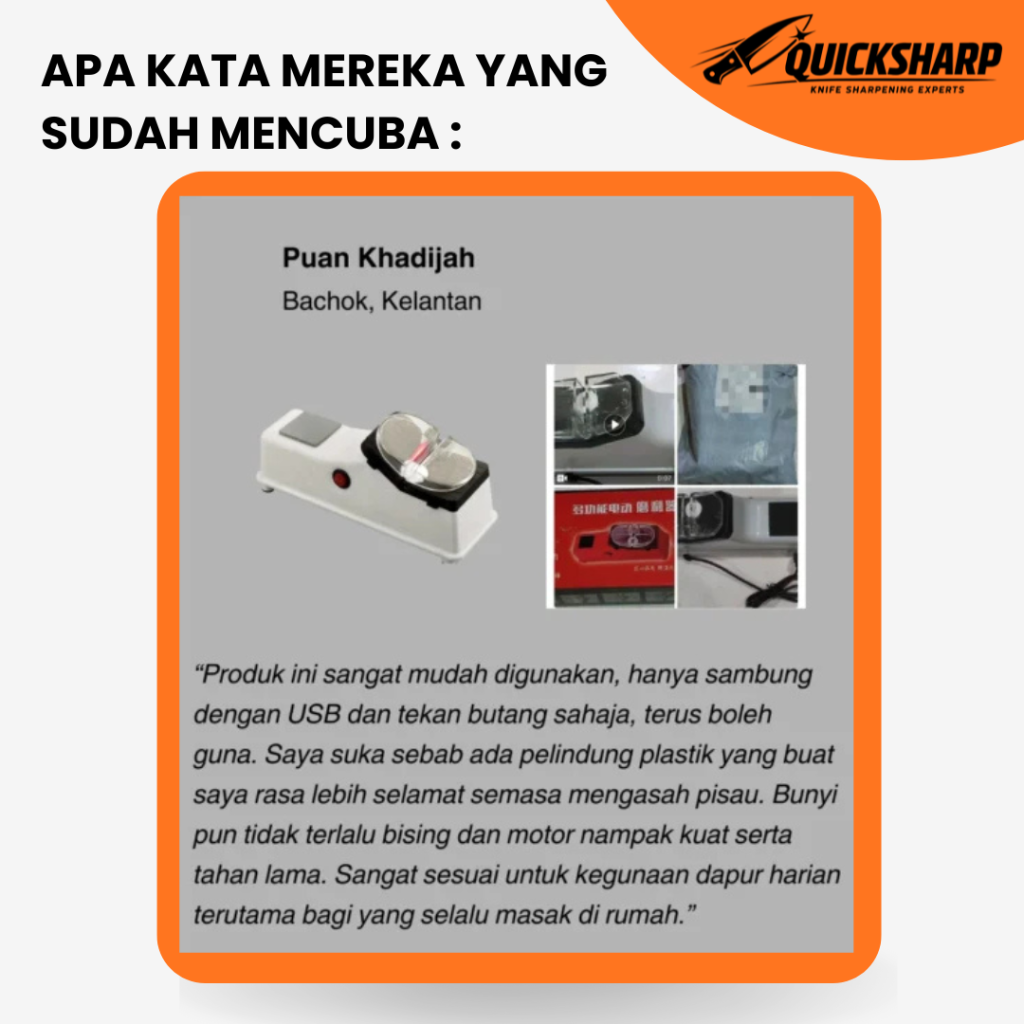 Hanya 1-2 minit untuk pisau kembali tajam – lebih pantas dari cara manual.